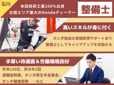 株式会社ホンダ四輪販売北陸 自動車整備士 石川 ホンダ正規ディーラー 本田技研と同じ福利厚生 資格制度あり 求人 転職情報のキャリコネ転職